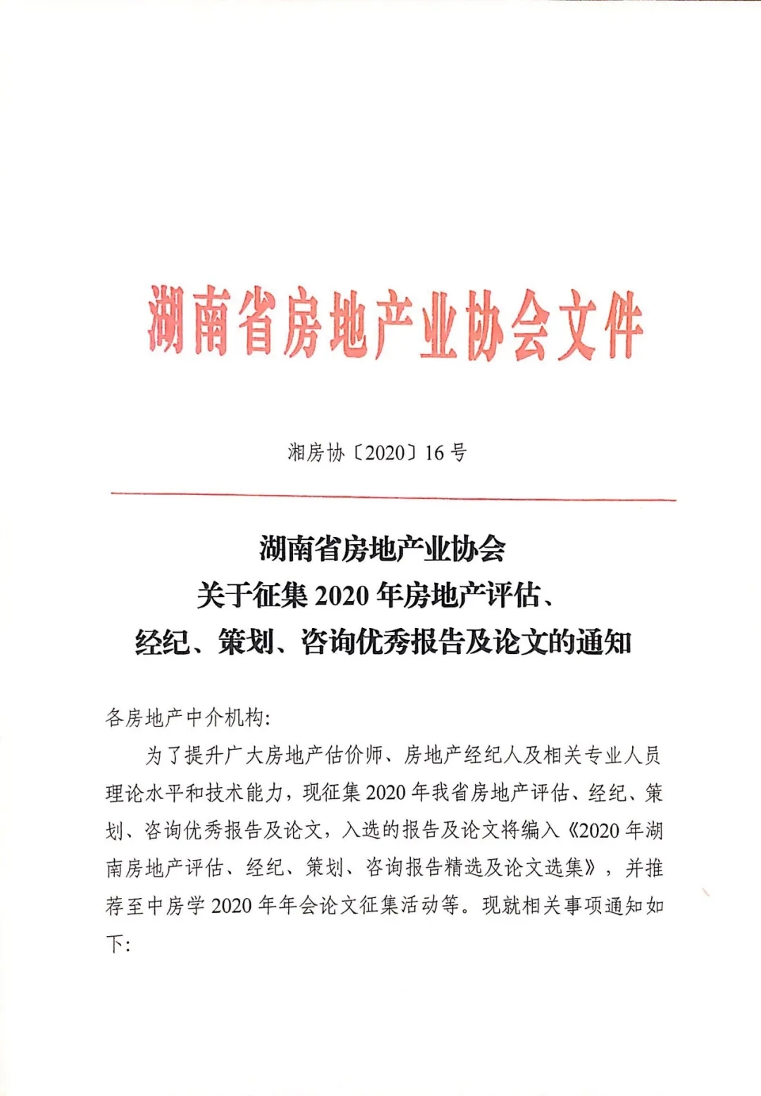 關于征集2020年房地產(chǎn)評估、 經(jīng)紀、策劃、咨詢優(yōu)秀報告及論文的通知
