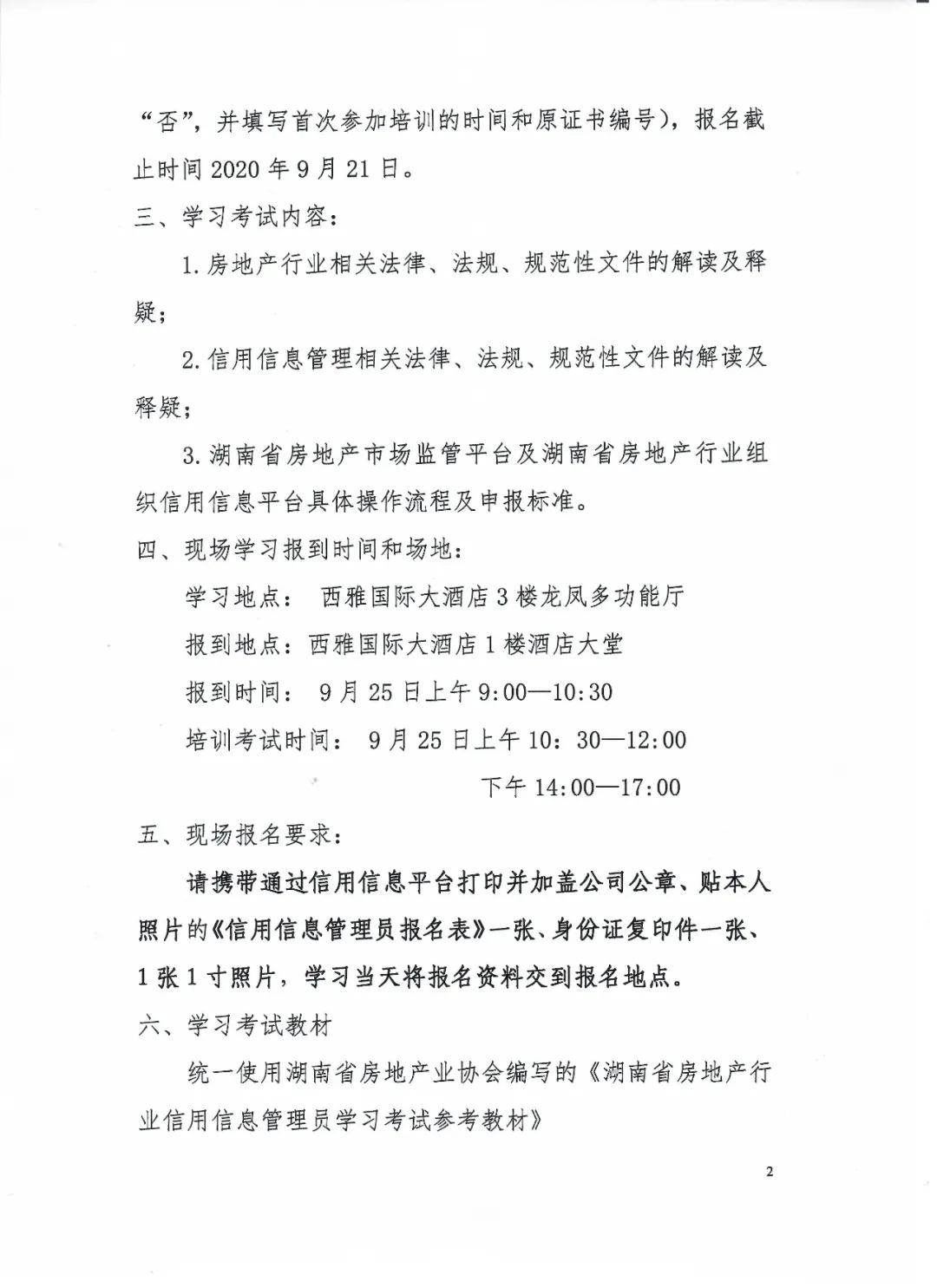 統一使用湖南省房地產業協會編寫的《湖南省房地產行業信用信息管理員學習考試參考教材》