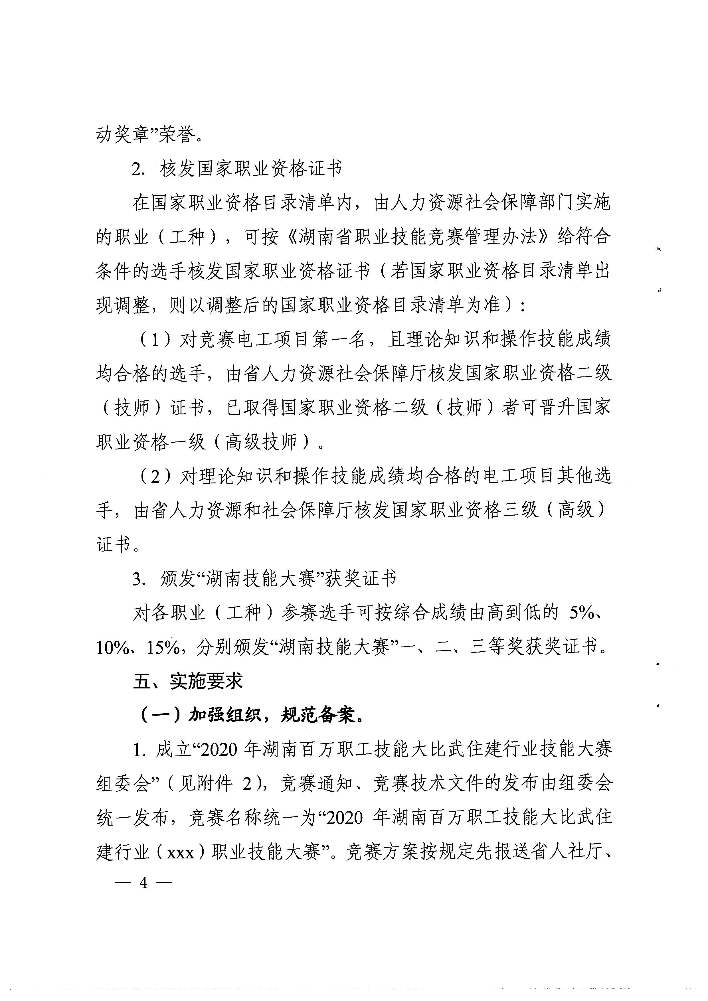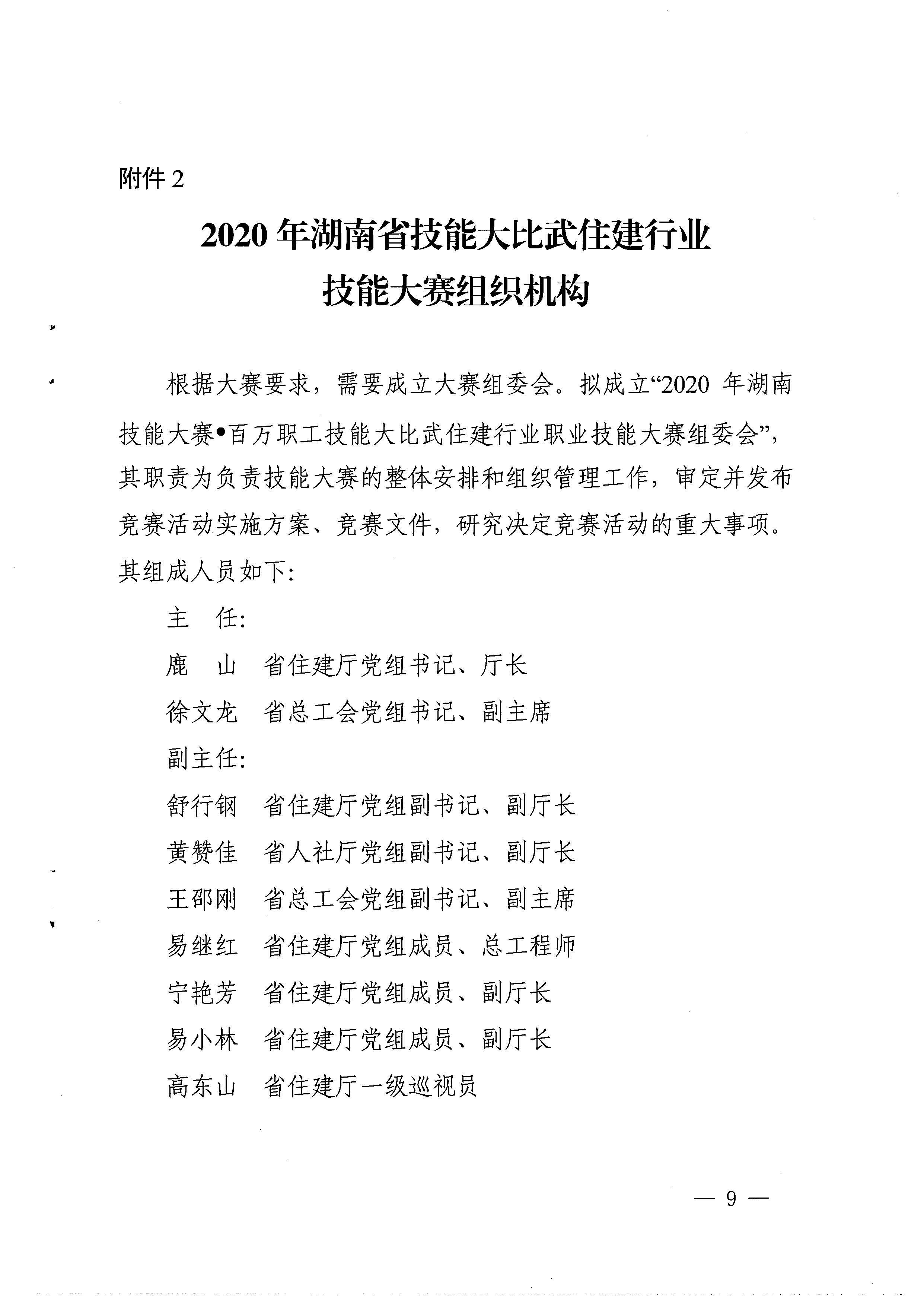 湖南省住建廳等三部門關于舉辦2020年湖南百萬職工技能大比武住建行業職業技能大賽的通知