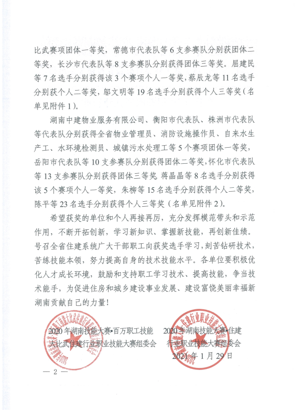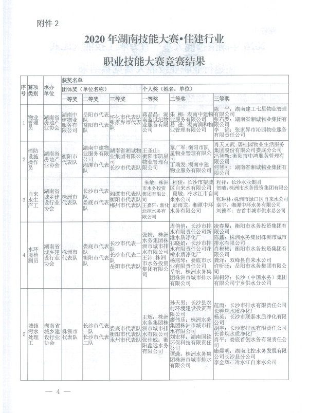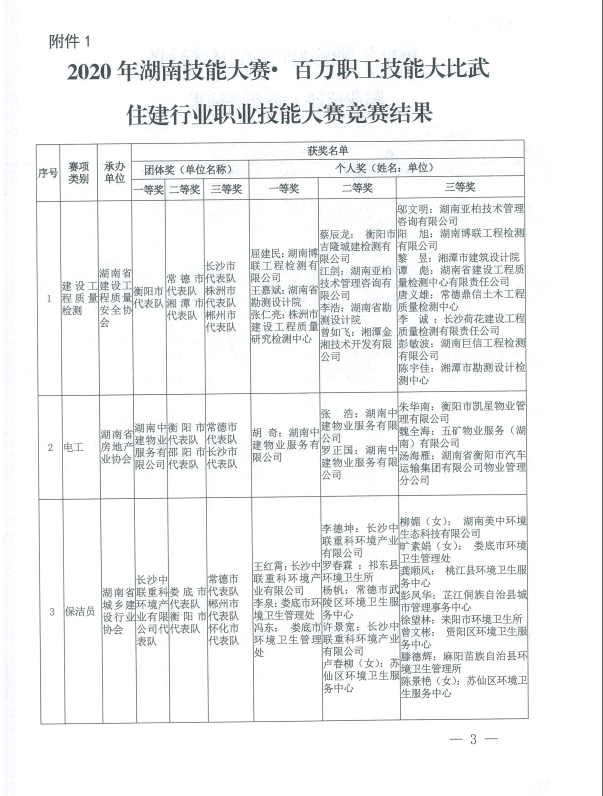 關(guān)于2020年湖南省住建行業(yè)職業(yè)技能大賽競賽結(jié)果的通報
