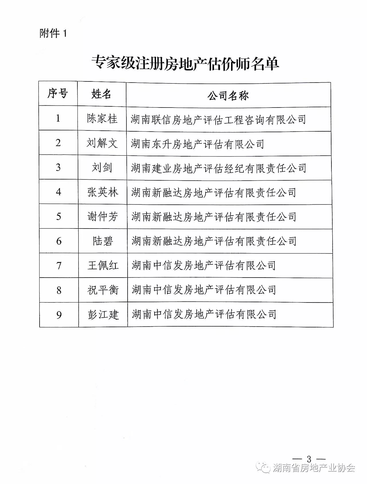 根據《湖南省房地產業協會<關于印發湖南省注冊房地產估價師執業等級評審考核辦法(試行)的通知>》,經企業自行申報、市州房地產中介協會(中介專業委)初審、省房地產業協會中介專業委員會復審、專家委員會審定、主任單位會議通過后,陳家桂等9位同志被評定為專家級注冊房地產估價師,劉向陽等15位同志被評定為高級注冊房地產估價師。原文如下。