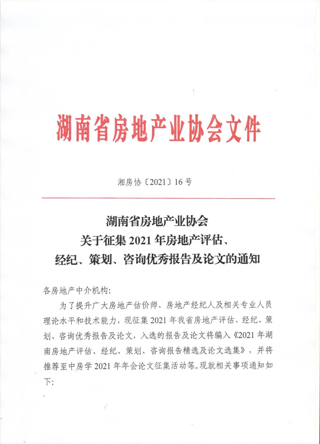 關于征集2021年房地產評估、 經紀、策劃、咨詢優秀報告及論文的通知