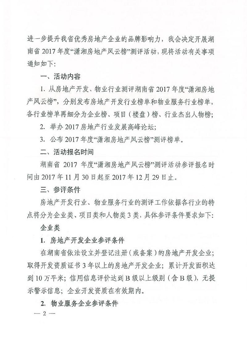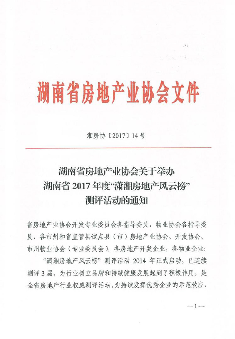 關(guān)于舉辦湖南省2017年度“瀟湘房地產(chǎn)風(fēng)云榜”測評活動(dòng)的通知