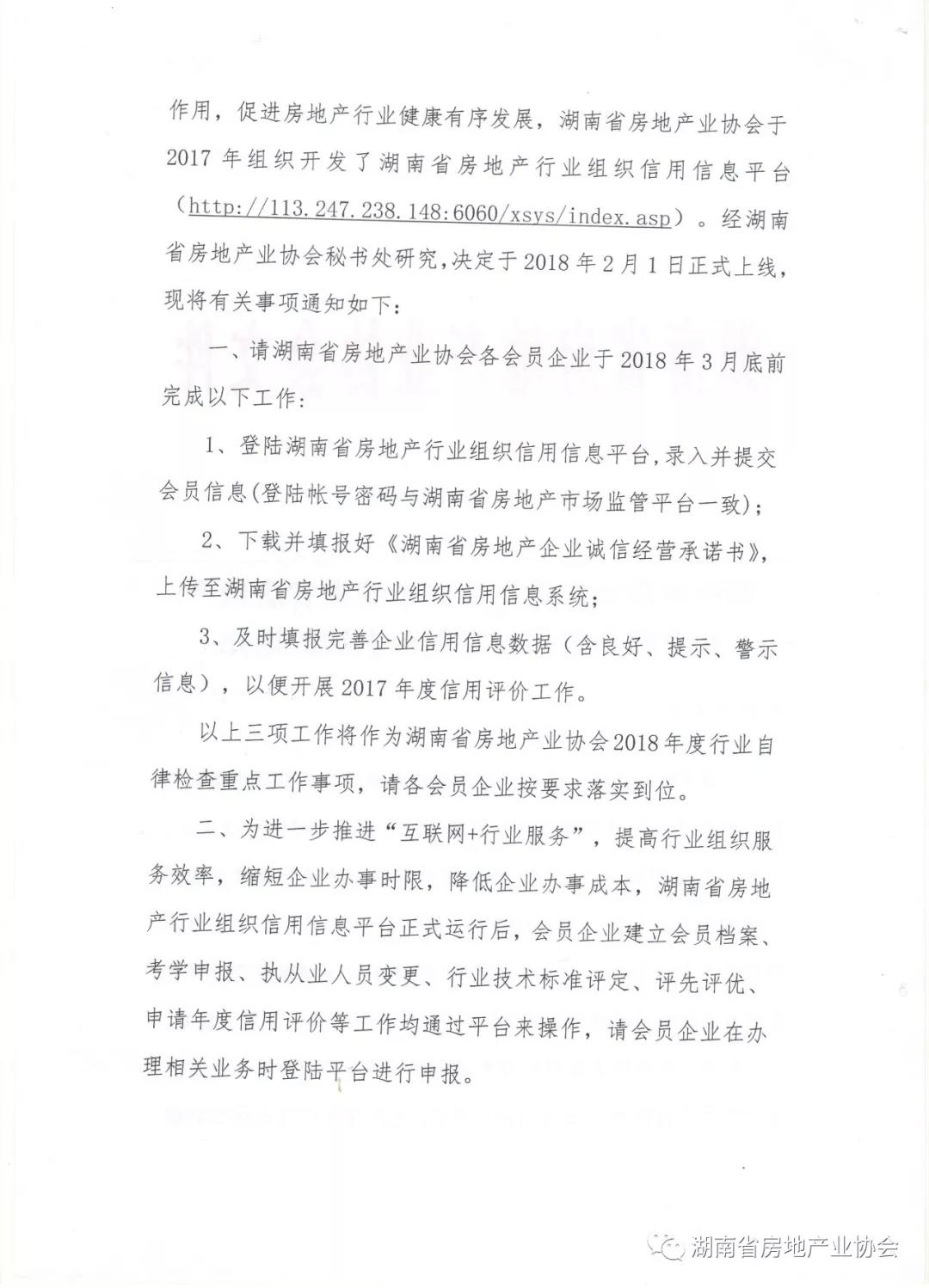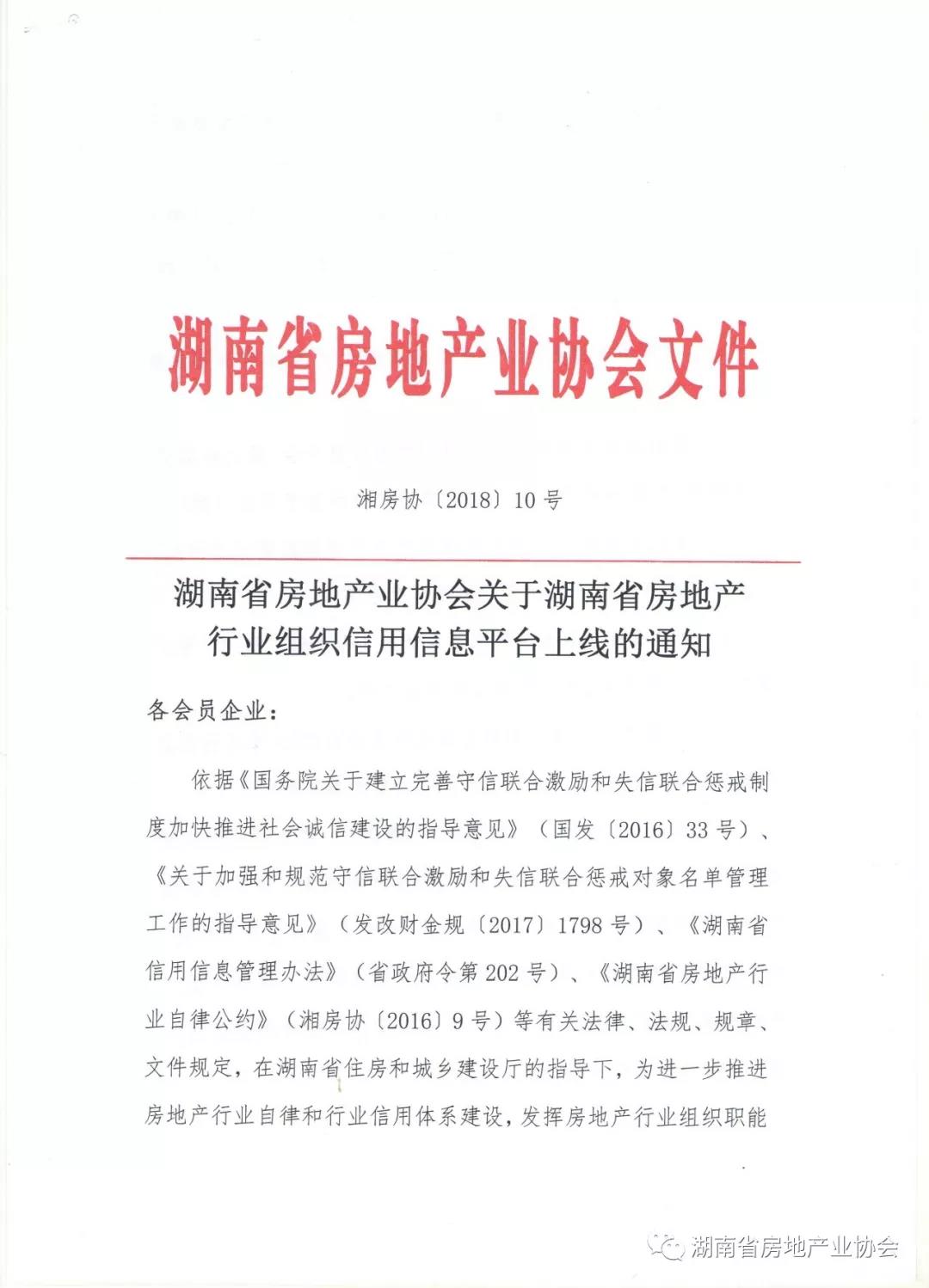關(guān)于湖南省房地產(chǎn)行業(yè)組織信用信息平臺(tái)上線(xiàn)的通知