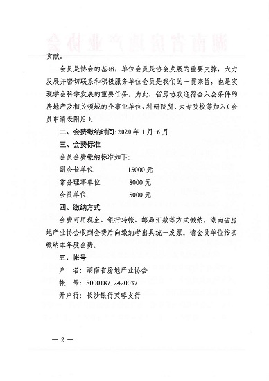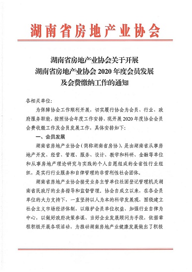 關于開展湖南省房地產業協會2020年度會員發展及會費繳納工作的通知