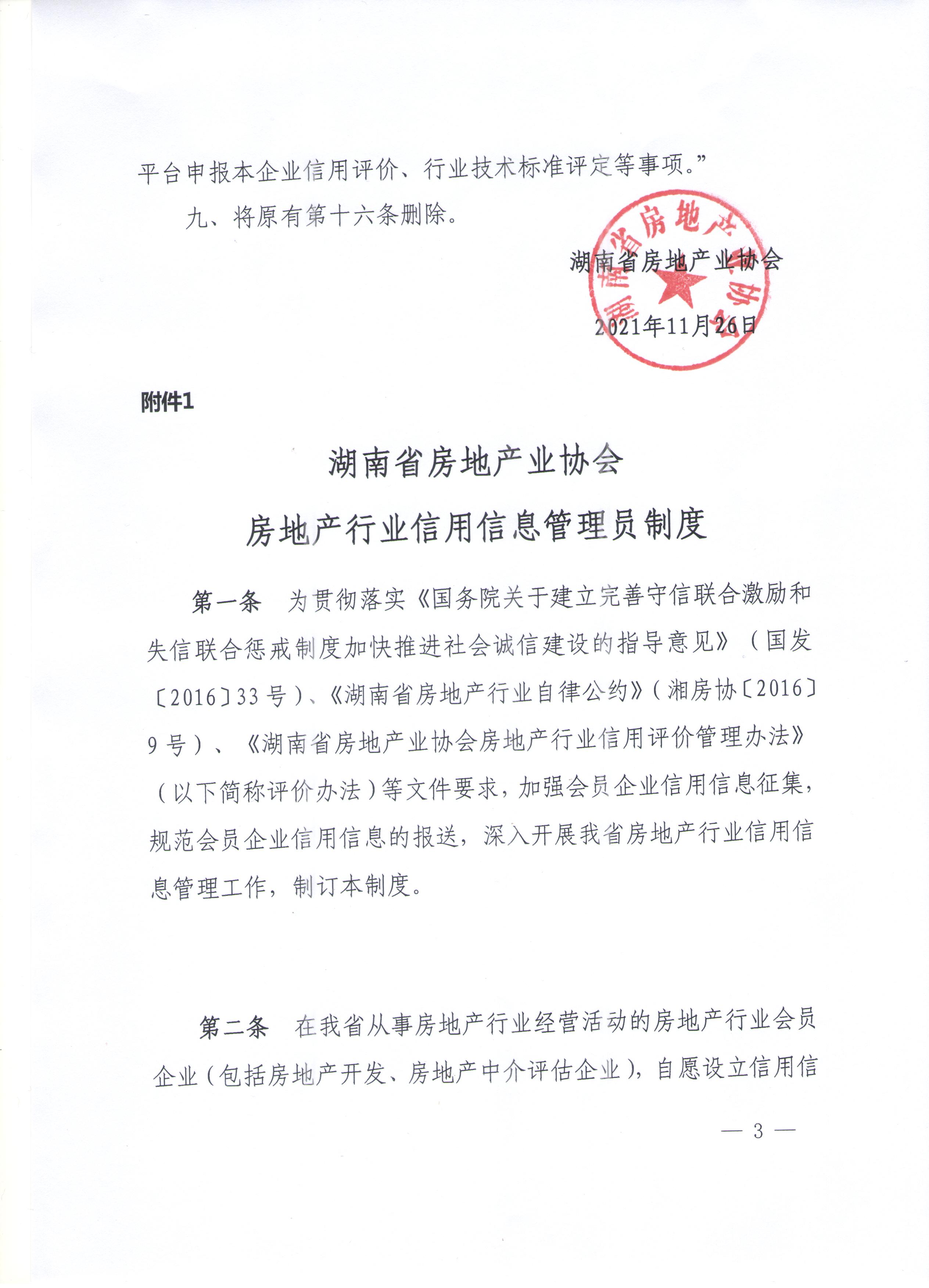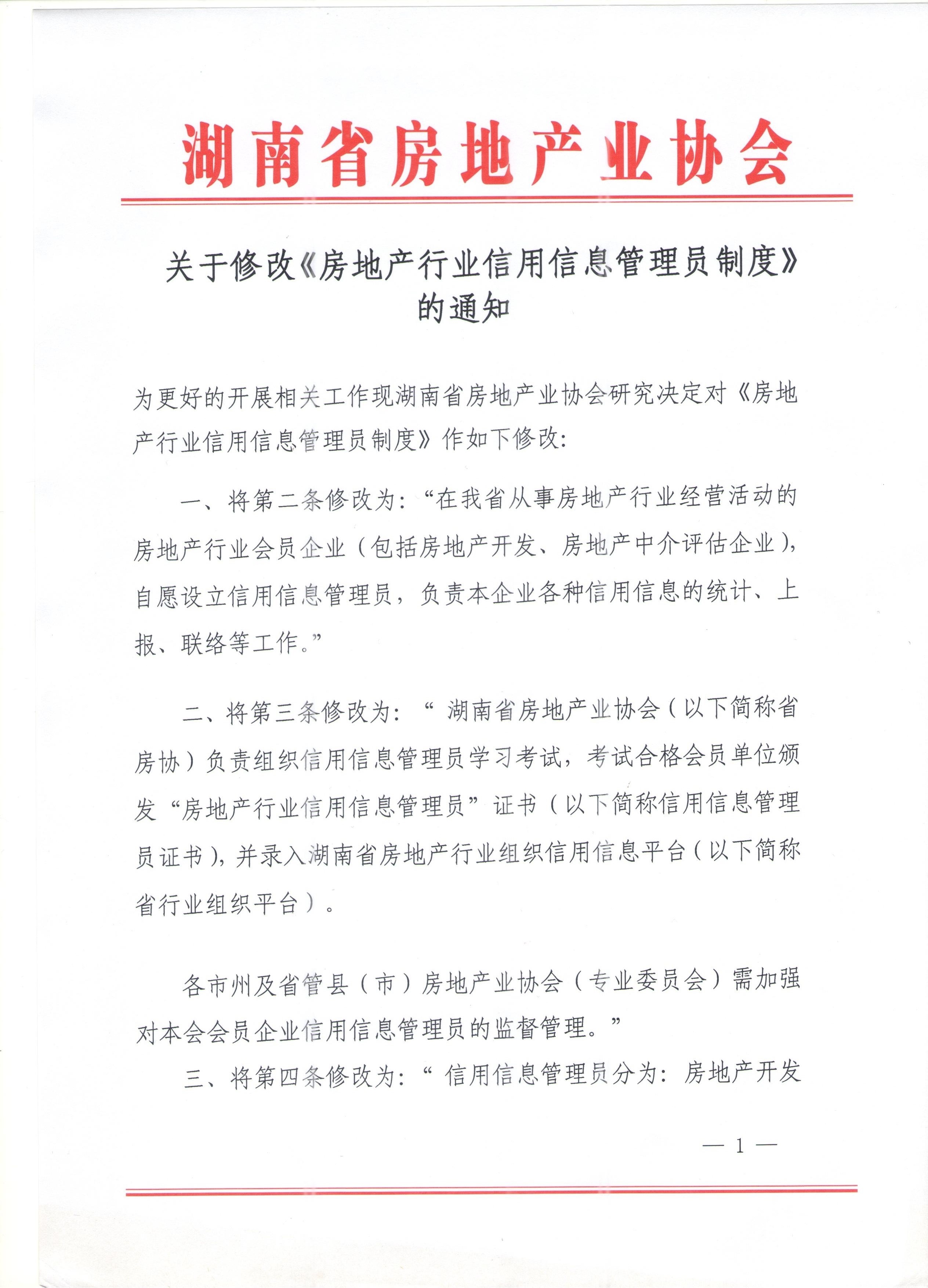 關于修改《房地產行業信用信息管理員制度》的通知