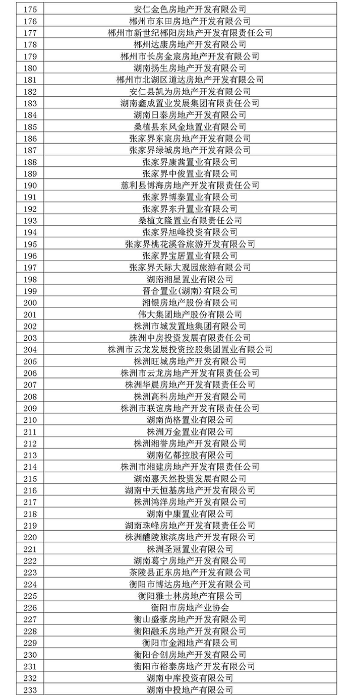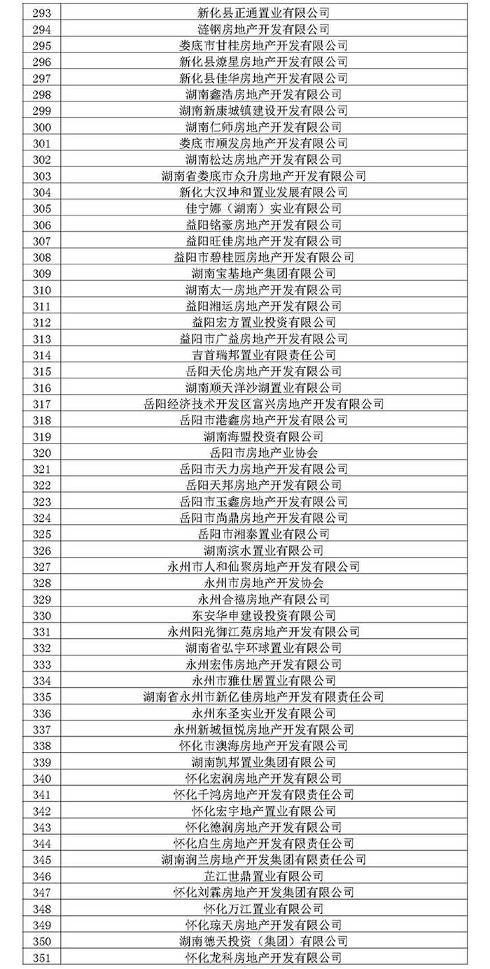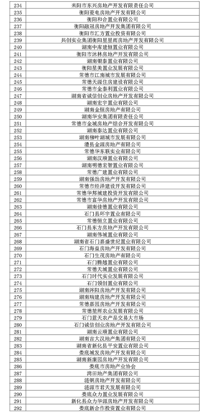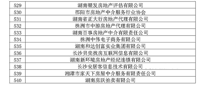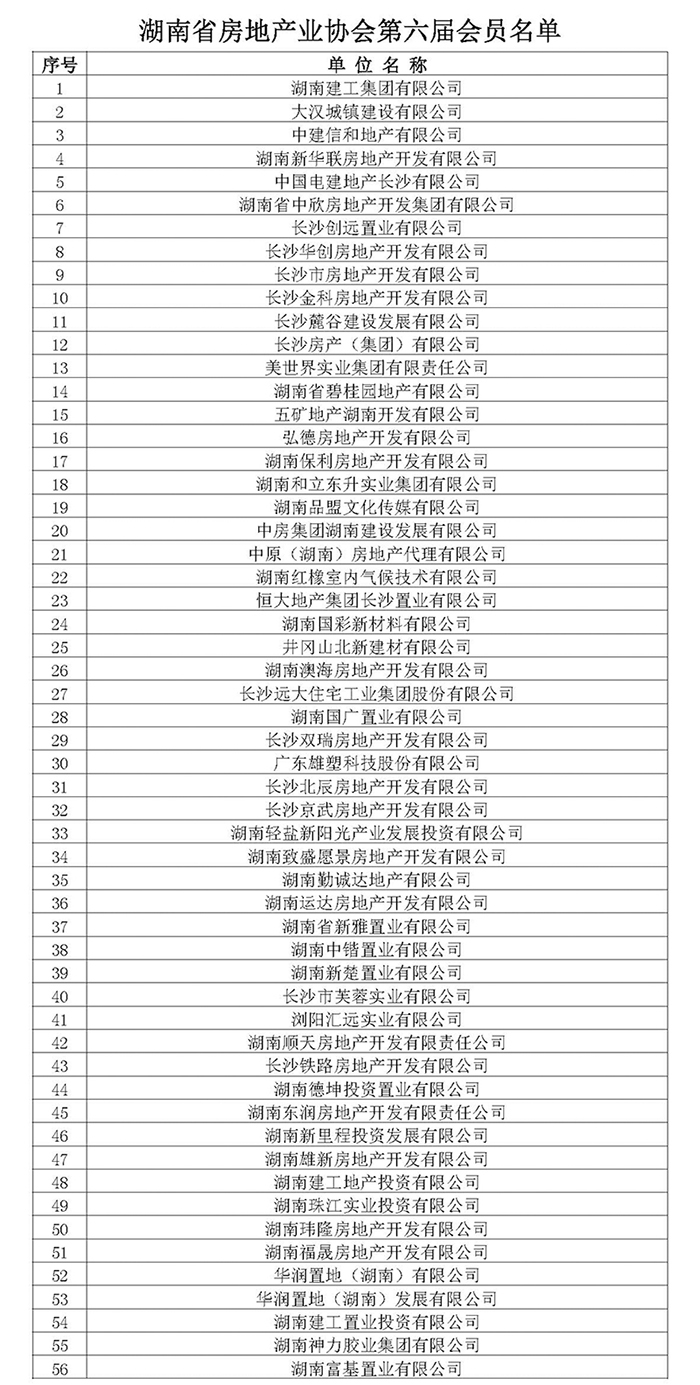 湖南省房地產業協會第六屆會員名單公示