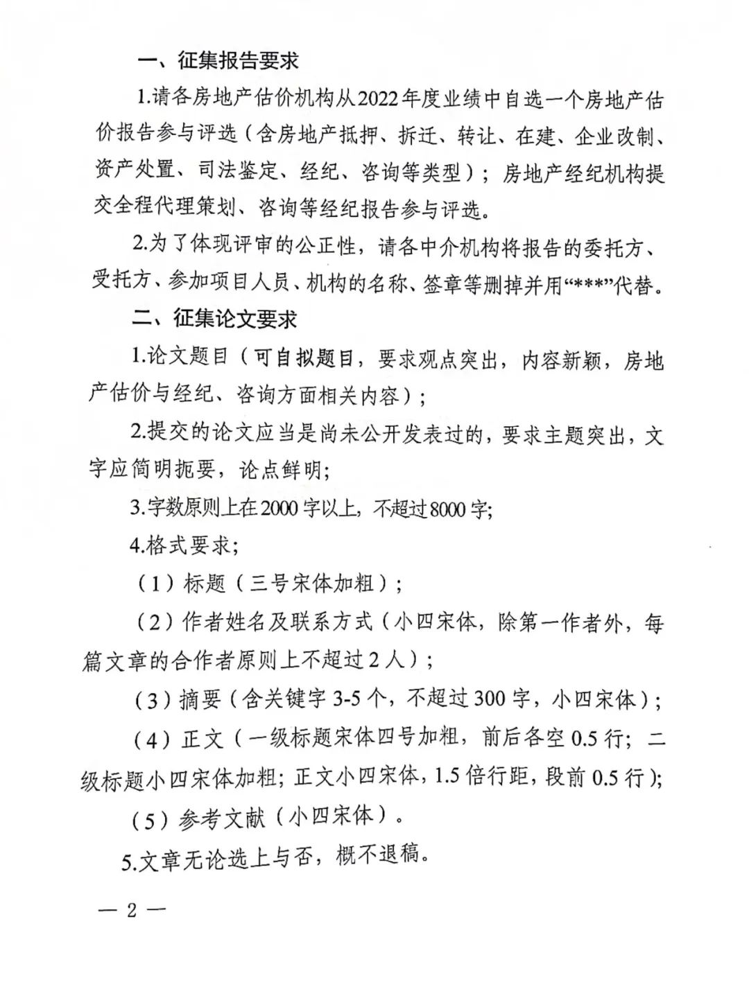 關于征集2022年房地產評估、經紀、策劃、咨詢優秀報告及論文的通知