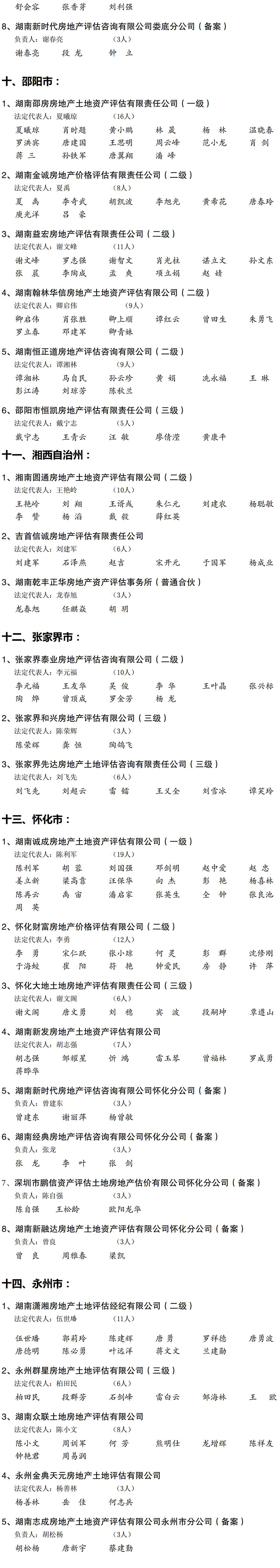 2021年度湖南省房地產估價企業及注冊房地產估價師名單公布