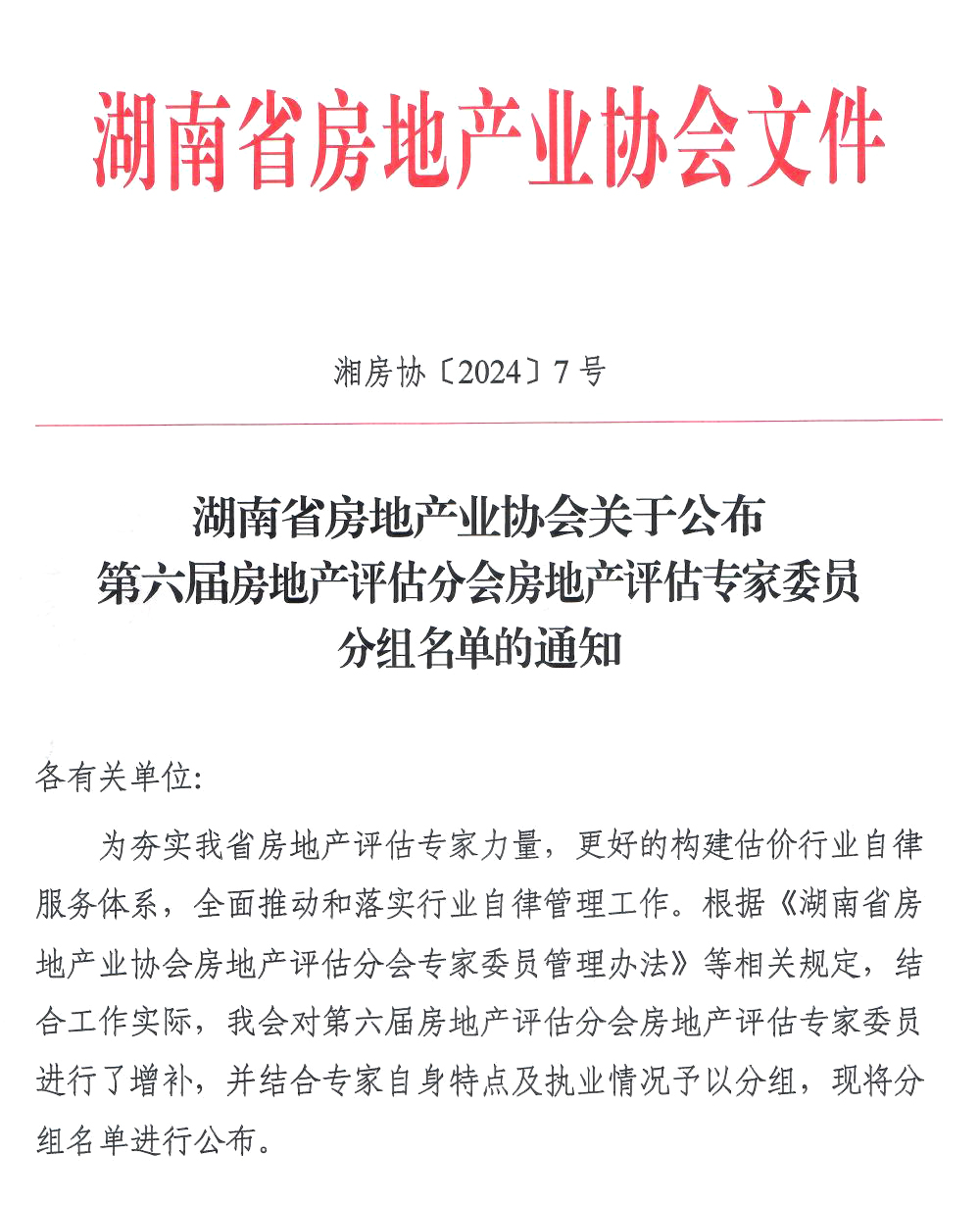 關(guān)于公布第六屆房地產(chǎn)評(píng)估分會(huì)房地產(chǎn)評(píng)估專(zhuān)家委員分組名單的通知
