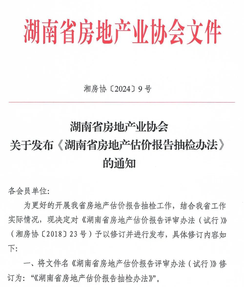 關(guān)于發(fā)布《湖南省房地產(chǎn)估價(jià)報(bào)告抽檢辦法》的通知