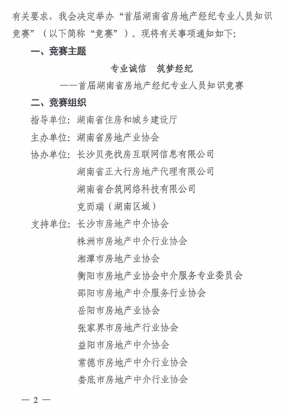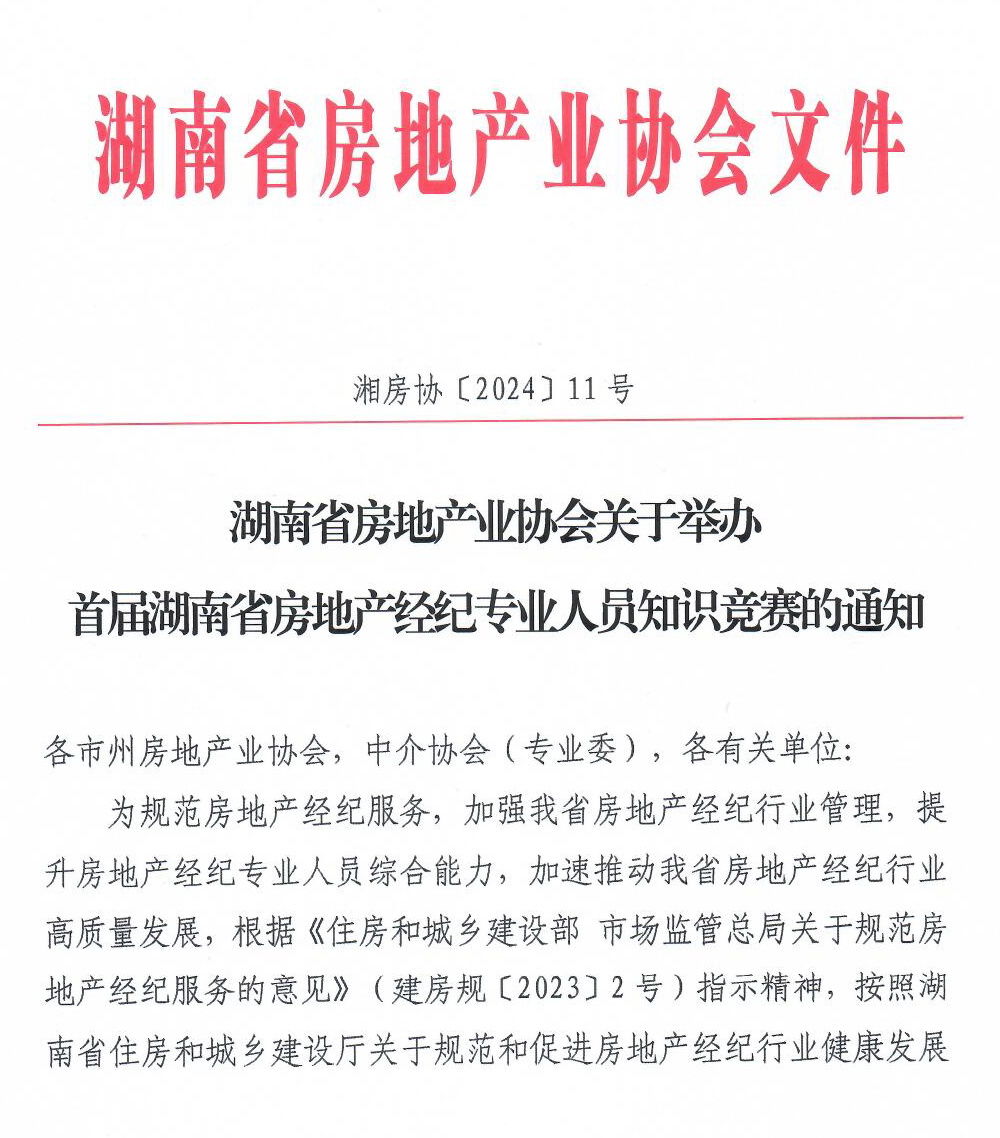 關于舉辦首屆湖南省房地產經紀專業人員知識競賽的通知