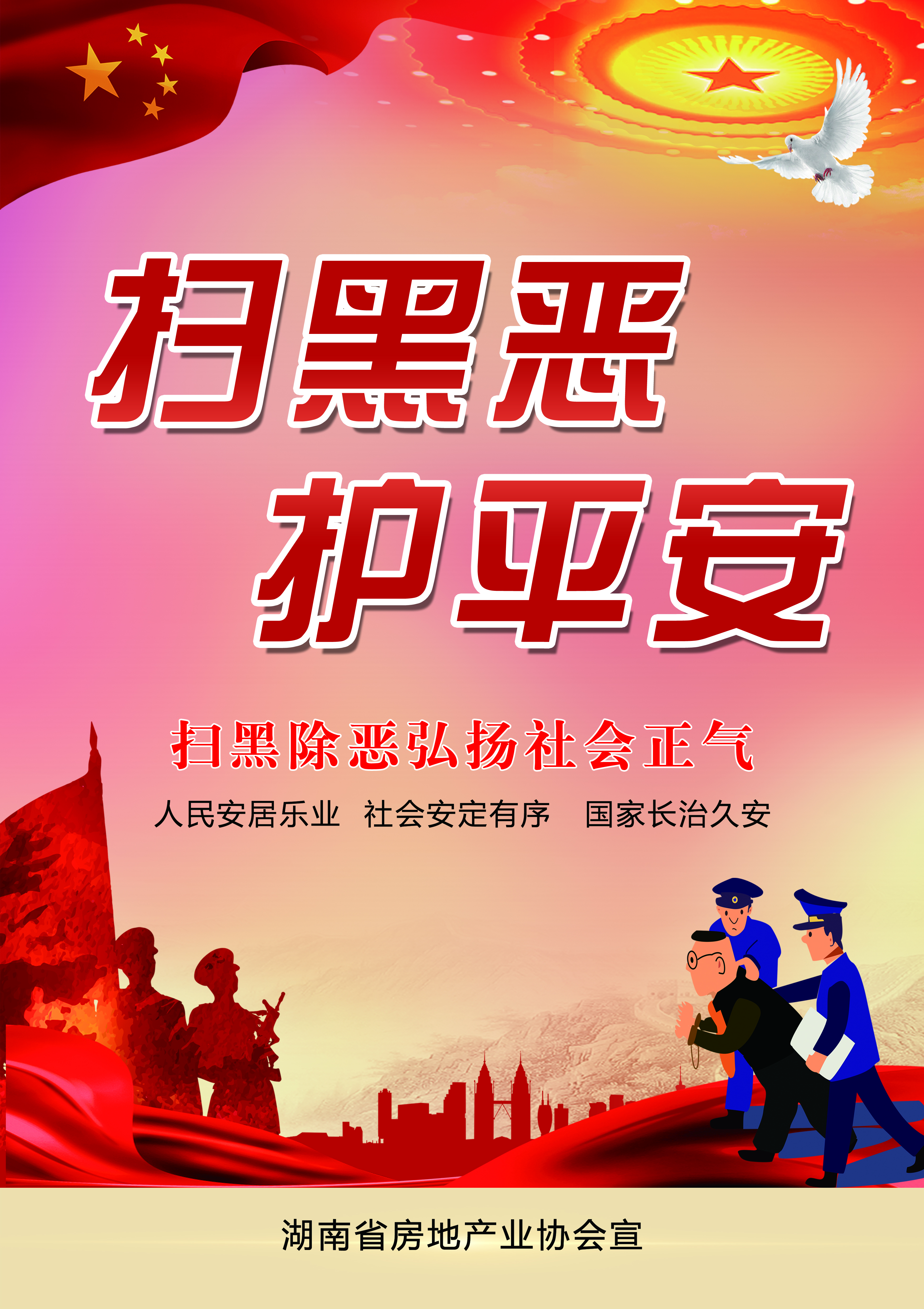 附件:(點擊鏈接下載湖南省房地產(chǎn)業(yè)協(xié)會掃黑惡護平安宣傳海報)