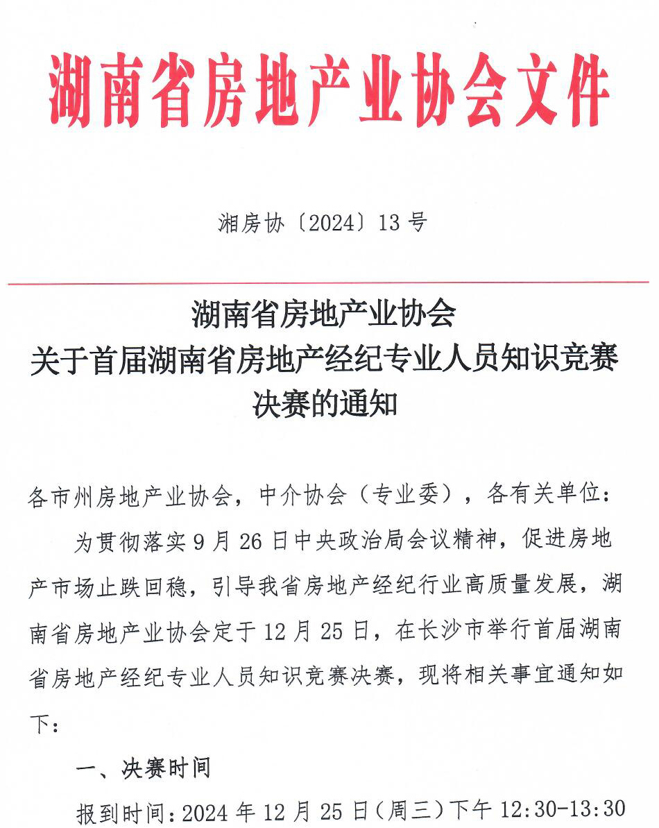 關于首屆湖南省房地產經紀專業人員知識競賽決賽的通知