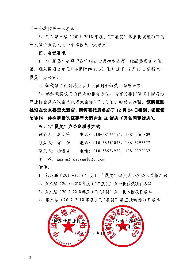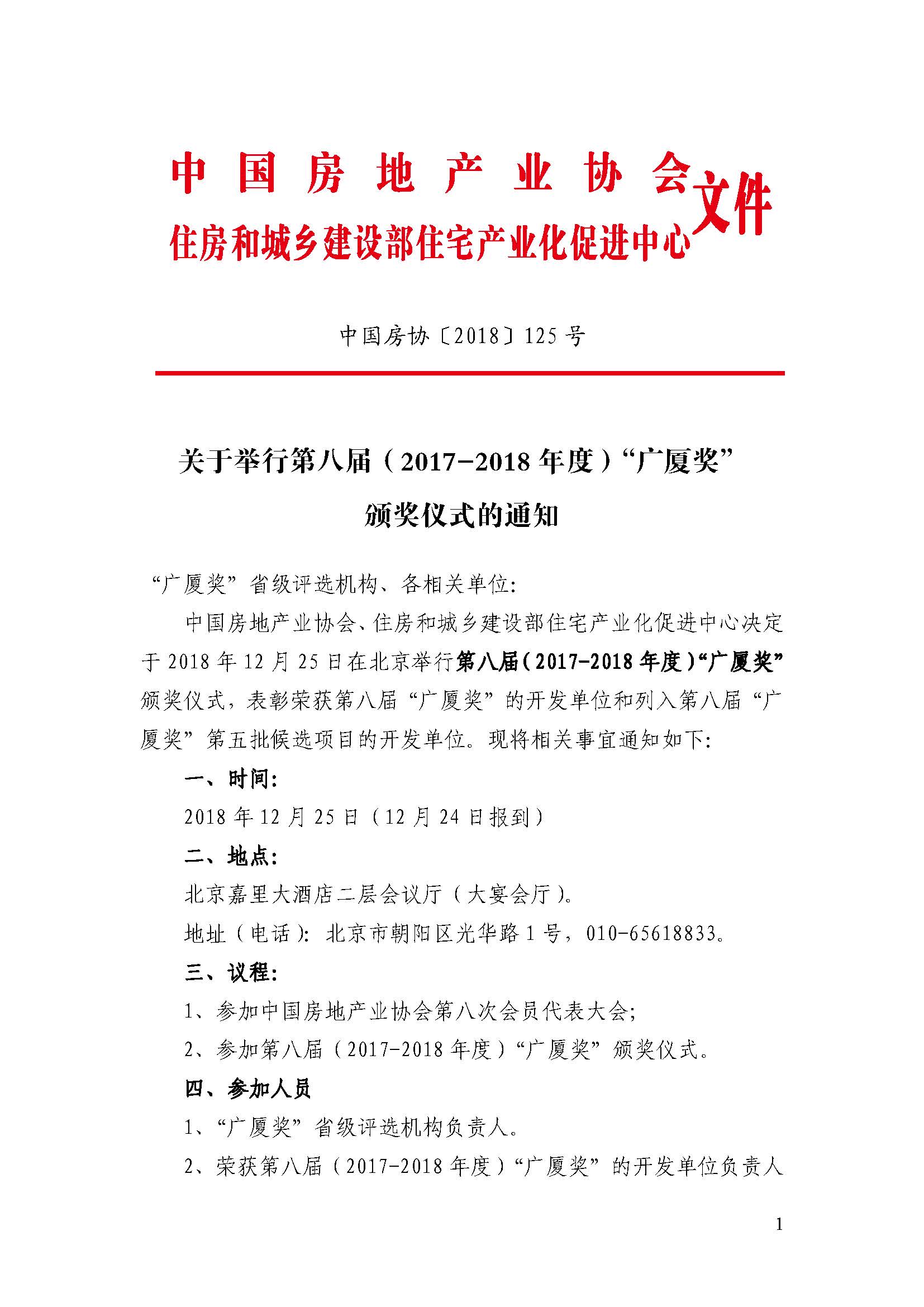 關于舉行第八屆(2017-2018 年度)“廣廈獎” 頒獎儀式的通知