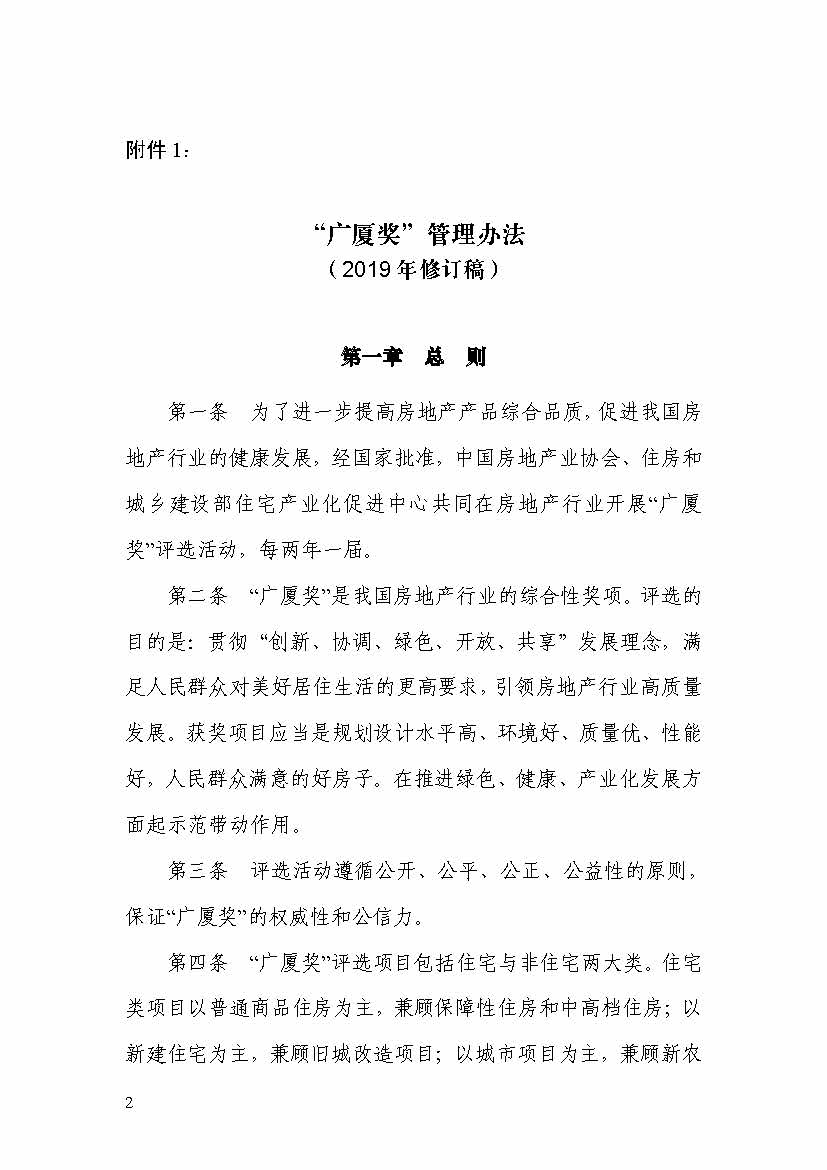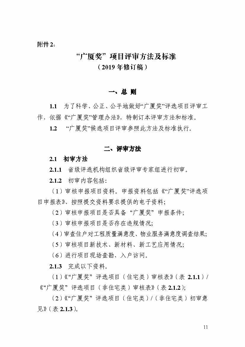 關于印發《“廣廈獎”管理辦法》、《“廣廈獎”項目評審方法及標準》(2019 年修訂稿)的通知